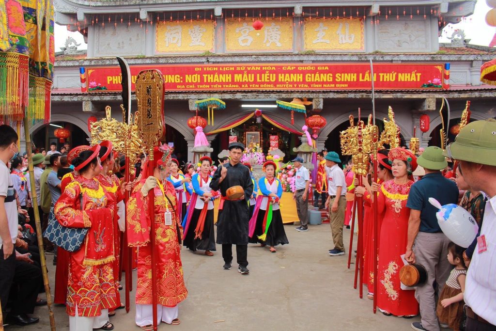 Quảng Cung xưa hàng năm giỗ Mẫu vào ngày 2/3 âm lịch. Theo truyền thuyết, từ năm 1740 vâng lệnh triều đình, quan phủ Nghĩa Hưng đều phải làm chủ tế. Sau tế lễ là lễ hội, rước kiệu Mẫu về đền thờ tổ họ Phạm ở La Ngạn, rồi rước lên chùa Kim Thoa…
