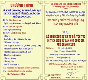 🙏 Vào ngày 25 tháng 9 âm lịch (tức 27/10/2024), lúc 8h30 sáng, tại Phủ Quảng Cung (xóm 22, xã Yên Đồng, huyện Ý Yên, tỉnh Nam Định), sẽ diễn ra “Lễ khởi công dự án tu bổ, tôn tạo di tích Lịch sử Văn hóa Quốc gia Phủ Quảng Cung”.